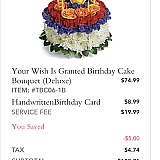 Ordered a Birthday Cake design for $103 and received flowers in a cheap vase. I could have done better at Walmart picking out flowers. They cancelled the order and did Florists choice without asking or informing me. This was a huge disappointment. Big difference and they pocket the money and don't care who they hurt. Florist was given a $59 dollar option of their choice. So, Telefloral took their part. Shame on this business.