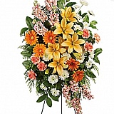 The arrangement was awful. Vaguely like what was pictured but most of the flowers were unopened. Might be ok for an arrangement that would be enjoyed over several days but this was an arrangement spray delivered the day of a funeral. WHo is going to appreciate it the next day and there is no way to water it. It was a big rip off and i will never order from them again. The first picture is from their website on what it should look like. The second was what was delivered