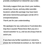 We have investigated this issue and our team has confirmed that the correct items were delivered to the correct address. Please check your mailbox, around your house, and other possible locations. Sometimes packages can be left in unexpected places. Thank you for your understanding.