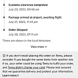 Hello, thank you for shopping with us and we are sorry you are experiencing difficulties with your recent orders. Temu (tee-moo) is an online marketplace that offers quality merchandise from the world's top suppliers and brands to consumers at affordable prices. We work closely with trustworthy logistics partners to ensure that your order is delivered reliably and efficiently. Most packages arrive between 7-15 business days. You can track your shipping status and see your expected delivery date directly in the Temu app or on Temu.com. If the tracking status is not updated for 15 days, you can request a full refund and keep your items when they arrive. If your order arrives later than the estimated delivery date, you will receive Temu credits as a sign of appreciation for your patience. Finally, if your items do not arrive, arrive damaged, or do not match the description or photos, you will be offered a full refund under Temu's Purchase Protection program (https://www.temu.com/temu-purchase-protection.html). Customer satisfaction is of the utmost importance and we are constantly working to improve our service quality. If you don't mind sending us your order ID, message us through Temu.com or Temu app live chat so we can help you locate your packages and resolve this issue as soon as possible. Best wishes, Temu team