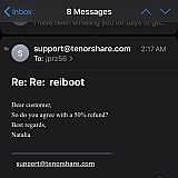 Answer: Please contact support team to get help: 1. Submit Online Form: https://support.tenorshare.com 2. Send Email to Support: [email protected]