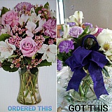Ordered my sisters flowers that were supposed to be Lavender and White, they sent flowers that were orange and red with 3 lavender roses. Was supposed to be a deluxe bouquet but turned out to be more of a 20.00 bouquet. Horrible service and horrible product. I'm a florist myself and would never ever do this to a customer.