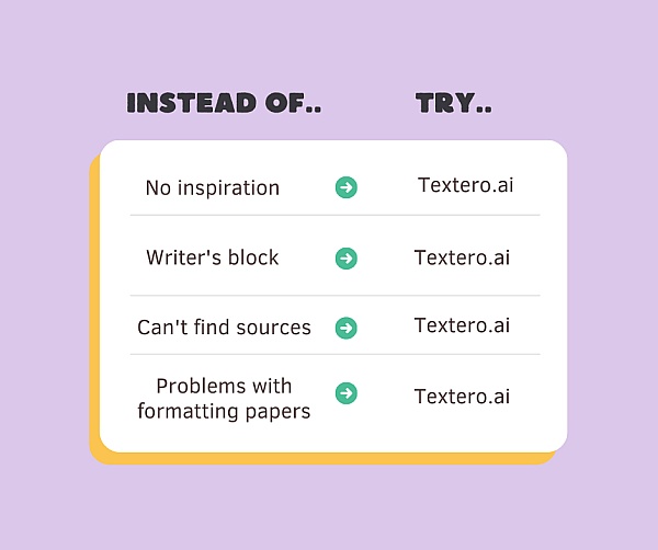 - Overcome writer's block: No time for writing? Textero AI generates original drafts and suggests strong thesis statements in minutes.