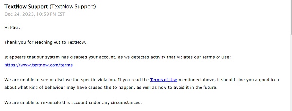 Hey James, thanks for your review! Due to number availability, we do advise using your number at least once every couple days, with an outgoing call or text to keep it active. I've sent a PM to assist further!