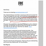 I went as far as to report Frye Company to the FTC for misleading business practices because I couldn't believe this experience and blatant lies about the product. It seems they are offloading less popular inventory in place of more popular inventory.