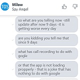 Answer: This issue is with the Cellular Network-end due to its security. In the latest build that is 1. 3. 3 app version where both sides of the conversation are recorded. You may download the latest app build and activate it. Thanks