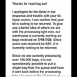 Sent my bag of summer items in at the end of July. It is December 18 and the bag still has not been checked in. I had no idea I was selling items for the summer to sell next summer. Their customer service is inexcusable. I have asked for my bag to be returned to me after 4 1/2 months. I still have not received it. I have lost money on being able to sell these items locally, I'm super frustrated. Their business model is very poor. I don't understand what happened with them. Please do not use. Save yourself some frustration.