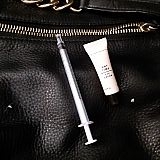It has 2 tears in the front. And inside was some makeup and a NEEDLE SYRINGE!