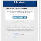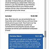 Never received any of the emails you claim to have sent me. Not on May 11th, August 8th or August 9th. I spoke with someone who claimed that she just emailed the tix and I told her that nothing had arrived. My internet was working because I was receiving other emails. But nothing came from your ticket agency. I spent over 196 dollars and never received any correspondence from you. I realize too late that your agency is not to be trusted and I will never use it again. Too late I read all the negative reviews that were left. I will be adding mine. Ticket center is a ripoff.