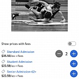 Was buying tickets for a state wrestling competition and couldn't believe they cost 100 dollars each per day. I would've spent nearly 600 dollars but decided to see if I could buy directly from the event center. They were 35 dollars for both days. Almost got ripped off, don't buy tickets from here.