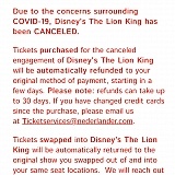 I requested a refund of $203.95 in March 2020 when Disney on Ice was cancelled. I received an email saying that my credit card account would be refunded on March 17,2020 stating in some cases tickets may have to be returned and refunds may take longer. I received a credit on April 20,2020 for a future Tickets-Center event for $224.34. On April 21, I received an email that Tickets-Center had revised their refund policy and would issue 110% credit instead of refund. I am elderly and have pre-existing conditions that impact my immune system. I let the company know that I will not be attending future mass events and the credit was meaningless. Feld Entertainment, the entity that markets Disney on Ice, gave full refunds to ticket purchasers, so this second market ticket seller was reimbursed, but will not reimburse me!
