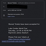 Buyer beware of this scam artist company with fraudulent tickets advertised on their website. I purchased tickets for the Luke Combs concert Saturday July 8th at Raymond James Stadium in Tampa, Florida on 9/14/22, these tickets were not released to me until Thursday July 6th. I accepted the tickets & did everything the email said to do, the only option I had for these tickets was to add them to my apple wallet which I did, that's when the nightmare began, the tickets once in my apple wallet said they were disabled because they were linked to someone else's Apple ID other than mine & to contact Ticketmaster. Ticketmaster unfortunately couldn't do anything to help me nor even see these tickets listen under my events with them, to contact tickets at work since that's who I purchased them through. Ticket as at work was full of nothing but the run around first it was call Ticketmaster they couldn't help me, when I advised them I already contacted them they told me there was nothing they could do on their end it's on Ticketmaster, trying to give me more bs. I spent hours on the phone with tickets at work & countless emails trying to get the issue with my tickets resolved so I could see Luke Combs like I paid for. To this day 7/17/23 this issue is still on going & tickets at work is refusing to help me or give me my money back claiming there's nothing they can do for me. I've sent them multiple emails with screenshots showing the issue I was having from the get go because they didn't transfer the tickets to me properly to begin with & now they want to keep my money. This company is run by nothing but scammers & conartist who only care about taking your money & not giving you the items you purchased through them.
