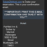 I book 2 hotel rooms in IL and when we went to check-in the first thing we realized was both A/C didn't work in either of the rooms. Then when we went to start unpacking we found that bathroom had a black mold problem in both showers in both rooms. And on top of that there were bloody boogers wiped on the bathroom counter in one room. Needless to say we didn't stay there. I had to make multiple phone calls almost everyday for them to tell me they are going to issue a refund of 103.46 out of the $600 and a "sorry for your inconvenience". If I would have booked through the hotel instead of ticketsatwork.com I would have got my total refund. But the hotel manager told me I had to go through my 3rd party to get my refund