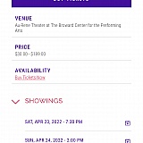 Yikes - i almost bought tickets for the Miami city ballet at the Broward performing arts center through "Tickets on sale". I wanted to find tkts for the 5pm show on Sunday. I saw it was a resale site so I wanted to see what might be available via the theater or the ballet websites. Something was weird because when i looked on the theater and ballet websites, it shows no 5 pm show - only Saturday night and Sunday at 2. I therefore called the Miami city ballet today. THERE IS NO SHOW at 5 pm on Sunday. Tickets on Sale didn't even do their homework well. What a scam! Thank goodness I did not buy tickets.