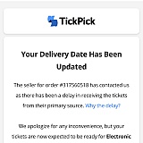 Stay away from this company. It can be a scam! The venue effectively cancelled the show and gave everyone a refund. The venue informed me I had to go through tick pick. Turns out their advertised money back guarantee if the show is cancelled is just a sales pitch. The fine print reads "at their discretion", and you agree to that when you give them your money. Very scam type practice and I would advise everyone look elsewhere. The seller cleaned up as they sold me a ticket and then they got a refund as well. What have we come to in this world to treat people this way.