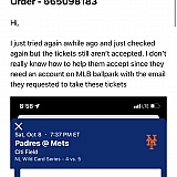I purchased tickets for the Mets vs Yankees game and later realized I couldn't go. I listed the tickets for sale and someone purchased them after a few days. I received an Email from Melonie telling me that I had to transfer the tickets which I did and received a confirmation of a successful transfer. The buyer never received the tickets and notified tickpick. I received several calls from Jen telling me I never transferred the tickets. I sent proof that I did and they still don't want to pay me for the sale. Somehow this became my fault. Ridiculous!