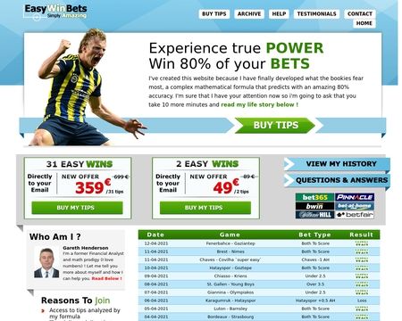 After getting my butt kicked for years by the bookies and losing a large amount of my savings I'm thankful I decided to give you a try though - my income has more than quadrupled thanks to your soccer tips!