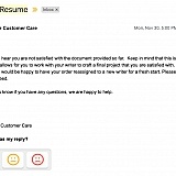 My writer dismissed my concerns and wants when working on my resume. I told them my draft was too wordy, and the paragraphs that were written did not make sense. Paragraphs were just bullets point together. When I told him I wanted him to change it, he would write back about how he was right. I decided to accept the offer because I was just so fed up with going back and forth. I want someone else to take a look at my resume if possible. Please feel free to contact me if this is possible. Thank you.