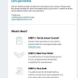 Answer: Hi Carolyn, Thanks for asking! The process will begin with a questionnaire. If after you submit the questionnaire, the writer has follow-up questions, the writer will reach out.
