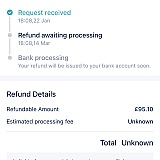 The train was showing cancelled so they said I can request a full refund as I hadn't travelled. The train was £157. They still haven't refunded me and it just says they will look at my refund on the 14th March. Trying to contact customer support and they don't recognise my booking number!