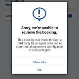 I had flight from Venice to Eindhoven via Vienna. There was no issue from Venice to Vienna but I was not able to checkin the flight from Vienna to Eindhoven. While checking in there was error "This booking was made through a third party travel agent, who has no commercial agreement with Ryanair to sell our flights".