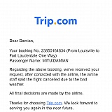 Trips.com, didn't care at all, didn't try to help me, didn't propose me a credit for future use, or anything at all. They just don't give a f...