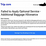 I have booked a ticket and added checked in baggage for a reasonable price on Trip com. I paid. Then I received an email that "adding the baggage failed". As a solution they offered me to buy it again with the airline directly for a price 3times higher than advertised during my booking and more expensive than the flight ticket itself. Obviously a fault or even a scam from Trip com, that they don't want to anyhow compensate. Chaotic replies to my inquiry from different agents using the same "textbook" phrases without listening to the main point of this issue. Their fraudelant treatment of customer leads to extra costs.