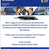They have been cheating about a refund issued by Ryanair on their account. The flight was cancelled cause a strike and they said the airline had not processed the money. Today I called Ryanair and the refund was sent on 21 October 2022. This is fraud!
