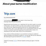 Today after four days I receive an email from them, I thought it would be an apology but no. They surprise me even more, it was a dry email, saying that they had been investigating that the person who put the names backwards was me. Well, Trip.com team is not about finding guilty, it is about solving problems for your customers. That's my advice for the future, maybe you'll do a little better!