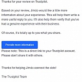But the story didn't end there. Now I'm being hounded by Trustpilot to provide even more documentation about my experience with Jimdo.
