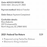 Taxes filed with TurboTax to save 500 to 600 fees I had been paying.