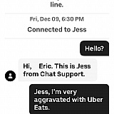 I'm learning to hate the service Uber Eats provides. It starts from the beginning of the experience. As you are considering where to order from Uber Eats tells you a window of time that this particular restaurant can fill your order. Every time i have placed an order the delivery window comes back as longer than advertised. I have never appreciated a "bait and switch" but if I'm hungry and the additional time isn't completely aggravating wont cancel my order. Tonight started with these familiar annoyances...and then got worse! Ten minutes after placing my order I get an announcement on the app, "Oops there has been a problem." No other details and the latest delivery time has gone from 10 minutes longer than advertised to 37 minutes longer than advertised when I ordered. I tried to get through to a human via the app on my phone. That process is needlessly annoying and did nothing to encourage me to be calm as I waited for 15 additional minutes after the app said I was being connected to a customer service rep! Why is it that Uber Eats doesn't seem to understand that if a customer is angry enough to contact customer service it is in the company's best interest not to create an experience that adds to the customer's sense of being poorly served. The customer service rep on the app stopped responding after a few questions leaving me without answers, satisfaction or enough time remaining to cancel my order. So food arrived 57 minutes after ordering instead of 20 and what was delivered came in damaged packaging and ice cold...which would have been fine if I'd ordered ice cream but I'd ordered a hot meal. I don't know who will read this review but if you are anything like me you see no reason to be charged for the privilege of being told substandard and ineffectual delivery service is worth the expense because it allows you to order something other than pizza or Chinese food. Uber Eats, if you are listening or reading, the service you currently provide is not at all worth the fees you charge and if it were possible to launch legal action over your bait and switch tactics at the time of ordering I would be very happy to meet your lawyers in court. As it is I must be satisfied with writing this review and then copying it to every online forum I can find.