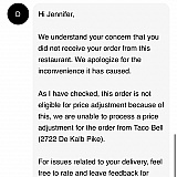 I complained to Uber Support, but no resolution to date. "Barbara" delivered a pizza with a piece missing out of the box. I discarded the entire pizza as who knows what else she did after getting into my food! Gutsy, rude and I will never order from them again. My advice, try a different food delivery app. I sure will!