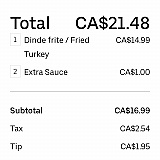 I bought a meal and paid for two EXTRA sauces. What i got was exactly 2 sauces instead of 3. The receipt shows the meal as 14.99$ and sauce at 1$ yet the subtotal is16.99$ which clearly shows I paid for two extra(2$ additional).