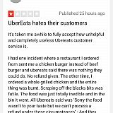 Their so called customer service is full of high school drop outs, which is great to see that even those types manage to get a job, however having to read their idiotic emails full of excuses and general BS makes me want to throw my phone at a wall. They take people's money and won't refund them even when the driver decides to not show up and claim whoever ordered the food never opened the door! I even found comments left my ubereats drivers bragging about how they get fes up with not receiving tips and keep the food for themselves especially on a nice sunny day from a good restaurant.