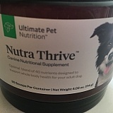 I wanted to start our Great Dane puppy on a nutritional supplement because it is what the breeder recommends. I watched the video/ad for Nutra Thrive and wanted to try it. Our puppy had had frequent loose stools, itchy skin, and was a little lethargic. After one month of adding 2 scoops to one meal each day, he has more energy and solid, regular stools. 2 out of 3 is good! Plus he seems to enjoy the flavor of the the added nutrients!