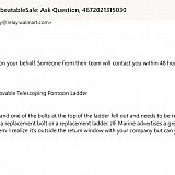 I bought a pontoon ladder from UnbeatableSale through the Walmart Marketplace last summer. The manufacturer has a two year warranty on their products but absolutely no contact information for the manufacturer on the internet. I contacted UnbeatableSale to see if they could provide me the manufacturer contact informant and they responded with a form email response that they were not able to help me because it's outside the 30 day return window. All I wanted was the contact information for the manufacturer and they wouldn't give it to me.--Suicidal Tendencies.