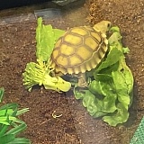 Cute active little guy wondered all over looking at its new home jump right in and ate thanks we love the tortoise