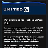 United Airlines cancelled my flight to El Paso Texas. I was going to a family wedding, my wife and son were already there. They said because their employees were overworked.