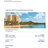 About a year ago I purchased a five-day Hawaii hotel program from Unsold.com. My family decided to go to Waikiki this summer so I went online, reviewed the available hotels for our proposed travel dates and sent in a request for a reservation to Unsold.com. On May 29,2021, I received an email from Unsold.com confirming the reservation had been made as requested.