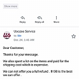 Uoozee took my money and not deliver goods. Why should I lose money? I will continue write till I get my full refund.
