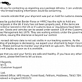 So after being promissed it would arrive on Monday 22nd March then on Thursday25th March bit tracking telling me it was still in the UK I managed to get a reply from UPS.