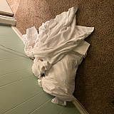 Dirty sheets still on bed along with dirty towels everywhere. Trash overflowing old coffee still in pot. Called Vacasa, said they would try to get someone out within a few hours. So sleeves rolled up, we stsrt clean8ng,cstripping beds and washing in machine. It was disgusting. You pay a large amount for walk in ready. Check in 4pm, two older women showed up at 7:30 done with vaccuum, wash floors made beds. Mico, fridge never touched, coffee pot cleaned by us. They wew gone in 45 min. A light clean at best.