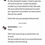 Walked in to find a dirty place. The futon in the living room was broken. WiFi didn't work. I contacted them through text/email and their "24/7 customer service" number over a dozen times. No response. Some "Molly" bot responds to poor reviews with, "sincere apologies". We had to pack everything up and rent something else. Contact the BBB. This company has been getting away with this for a long time.
