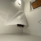 2. Entry area & two bedrooms near entry smelled like urine. Found out why. The ceiling in bathroom leaked and was half gone. Covered with plastic.
