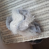 9. Furniture filthy dirty, covered with dog hair. One chair arm falling off.
