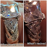 Sorry for not being able to provide you with satisfactory products and services. Judging from the initial picture, the prong pointed to by the red arrow looks broken. Because silver is relatively soft, this situation is generally caused by external forces.