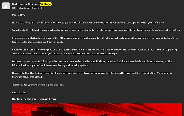🚫 I Lost $600 Due to Vantage Copy Trading App — Faulty Risk Settings, No Accountability I had a terrible experience with Vantage Markets' copy trading platform which led to the complete loss of my $600 USD trading account. I feel it's important to share this so others don't fall into the same trap. 🔧 Faulty Risk Settings Vantage offers a setting called "Equivalent Use Margin" inside their copy trading app. The purpose of this setting — according to their own description — is to control and limit your exposure by adjusting the lot size and margin use proportionally. I had carefully selected my settings, expecting that the system would cap the lot size or at least maintain strict control based on my chosen margin equivalence. But in reality, this feature didn't work as intended: The copy system sometimes took too many trades. It increased the lot sizes without my approval. It completely disregarded the limits I set in the application. 💸 Account Wiped Out Because of this, my trades quickly spiraled out of control. The copy trader was using a high-risk strategy, and the system exposed my account to far greater lot sizes than expected. I ended up losing 100% of my $ 600 balance. 🧾 No Proper Support or Resolution I contacted Vantage support, expecting at least a proper explanation or partial compensation. Their response was extremely disappointing. They said: "Just because you select 50.0 doesn't mean the application can limit to 50.0 lots." This makes absolutely no sense. If selecting a specific margin or lot-size equivalent doesn't actually limit anything, then what's the point of having that option at all? They had no real answer, no fix, and no accountability. Misleading Features — Huge Risk to Traders This isn't just about a bad trade — it's about a flawed system that misleads traders into thinking they are managing risk, when in reality the app completely ignores those limits. I believe this is either: A critical software failure, or Negligent design that can lead to massive losses for unsuspecting users. Final Warning If you are thinking about using Vantage's copy trading app, stay away — especially if you're relying on their risk settings to protect your capital. The system is unreliable, and support will not help you once things go wrong. I would never trust this platform again and strongly urge others to fully test any features with a demo account before investing real money — especially when it comes to copy trading or risk automation. Santosh Kumar Tiwary Copy account number- *******