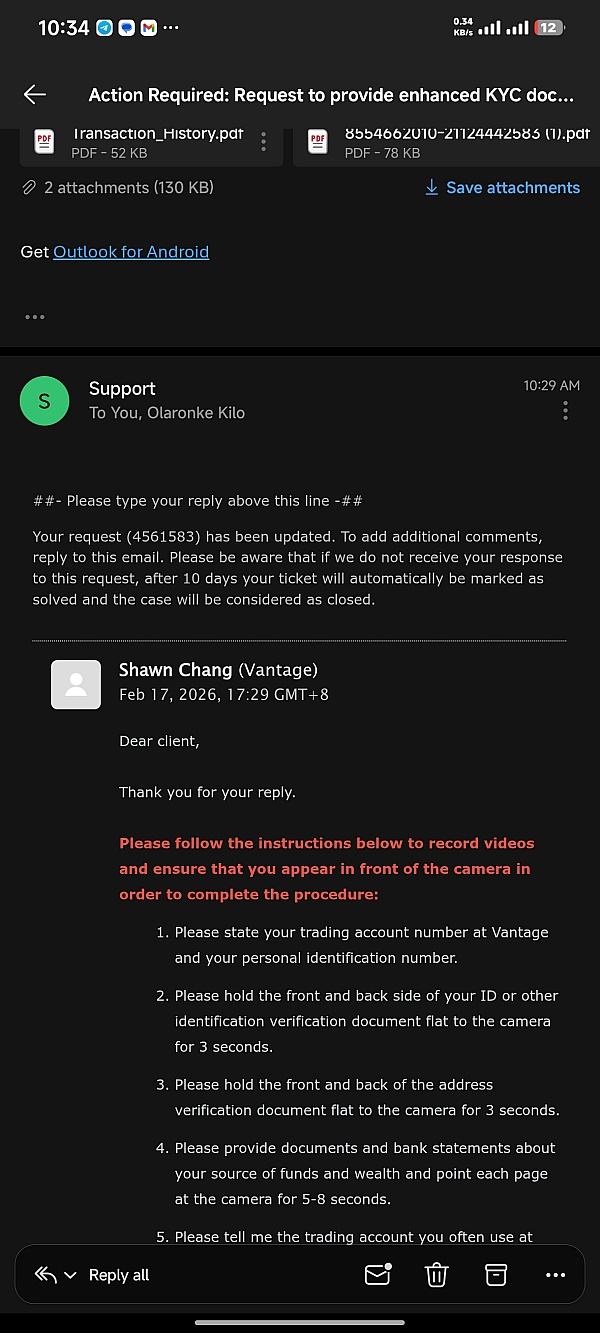 🚫 I Lost $20,000 Due to Vantage Copy Trading App — Faulty Risk Settings, No Accountability They are keep closing ticket also they are keep answering same. After 2 month instead of fixing issue they prepared document to tell we are very clear everything on document. They change all document and rule. I am going to attached ticket which they are keep closing also they deleted my ticket #******* I had a terrible experience with Vantage Markets' copy trading platform which led to the complete loss of my $20,000 USD trading account. I feel it's important to share this so others don't fall into the same trap. 🔧 Faulty Risk Settings Vantage offers a setting called "Equivalent Use Margin" inside their copy trading app. The purpose of this setting — according to their own description — is to control and limit your exposure by adjusting the lot size and margin use proportionally. I had carefully selected my settings, expecting that the system would cap the lot size or at least maintain strict control based on my chosen margin equivalence. But in reality, this feature didn't work as intended: The copy system sometimes took too many trades. It increased the lot sizes without my approval. It completely disregarded the limits I set in the application. 💸 Account Wiped Out Because of this, my trades quickly spiraled out of control. The copy trader was using a high-risk strategy, and the system exposed my account to far greater lot sizes than expected. I ended up losing 100% of my $20,000 balance. 🧾 No Proper Support or Resolution I contacted Vantage support, expecting at least a proper explanation or partial compensation. Their response was extremely disappointing. They said: "Just because you select 50.0 doesn't mean the application can limit to 50.0 lots." This makes absolutely no sense. If selecting a specific margin or lot-size equivalent doesn't actually limit anything, then what's the point of having that option at all? They had no real answer, no fix, and no accountability. Misleading Features — Huge Risk to Traders This isn't just about a bad trade — it's about a flawed system that misleads traders into thinking they are managing risk, when in reality the app completely ignores those limits. I believe this is either: A critical software failure, or Negligent design that can lead to massive losses for unsuspecting users. Final Warning If you are thinking about using Vantage's copy trading app, stay away — especially if you're relying on their risk settings to protect your capital. The system is unreliable, and support will not help you once things go wrong. I would never trust this platform again and strongly urge others to fully test any features with a demo account before investing real money — especially when it comes to copy trading or risk automation.