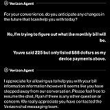 This company has to be one of the worst on the business market. When I've been on a plan for over 10 yrs and you continuously pester me about payments being one cycle late. I've had it up to my neck I'm really thinking about switching Sims at this point and they can just take my phone it's getting really old. They are worried about the customer none and the money only. Verizon was better before they absorbed Altell. Now it's a nationwide joke. Whoever is on the board should stick their f****ING foot in their mouth cuz there redundant. IF YOU HAVE NOT GOTTEN A PHONE FROM VERIZON DONT THEY ARE A PAIN IN THE $#*! AND NOT MUCH ELSE. Can't even log onto the app to pay my bill cuz the always set my phone do limited data bunch of idiots.